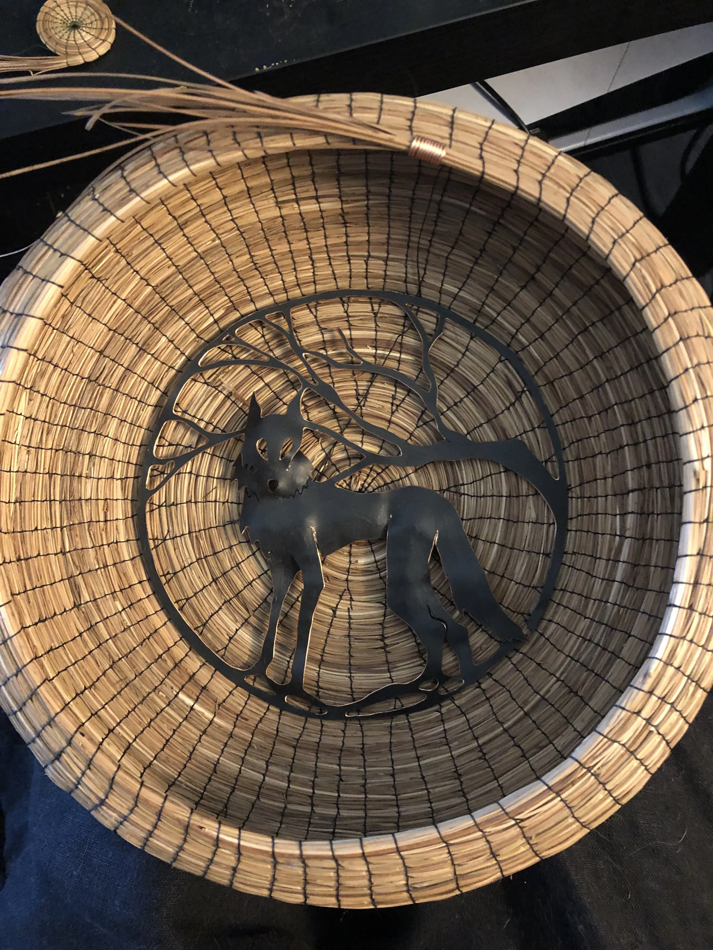 This piece has been an on again off again project as I tumbled ideas on how to complete it. I wanted to give it the depth that the initial idea called for while also keeping a visual balance. The touches of black coil in the “brambles” help with that.