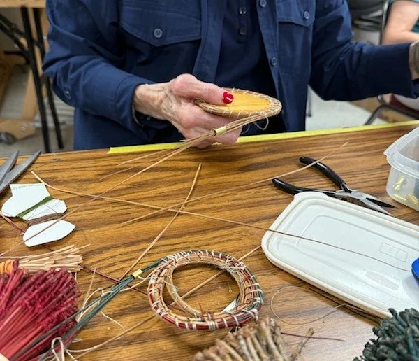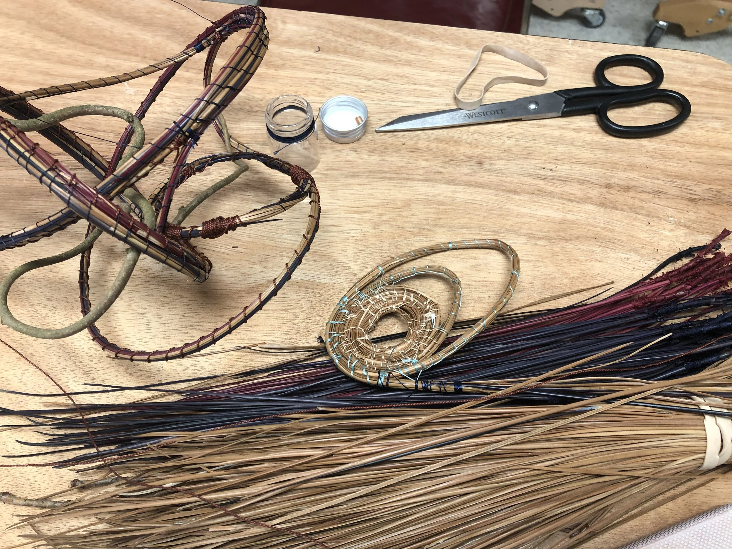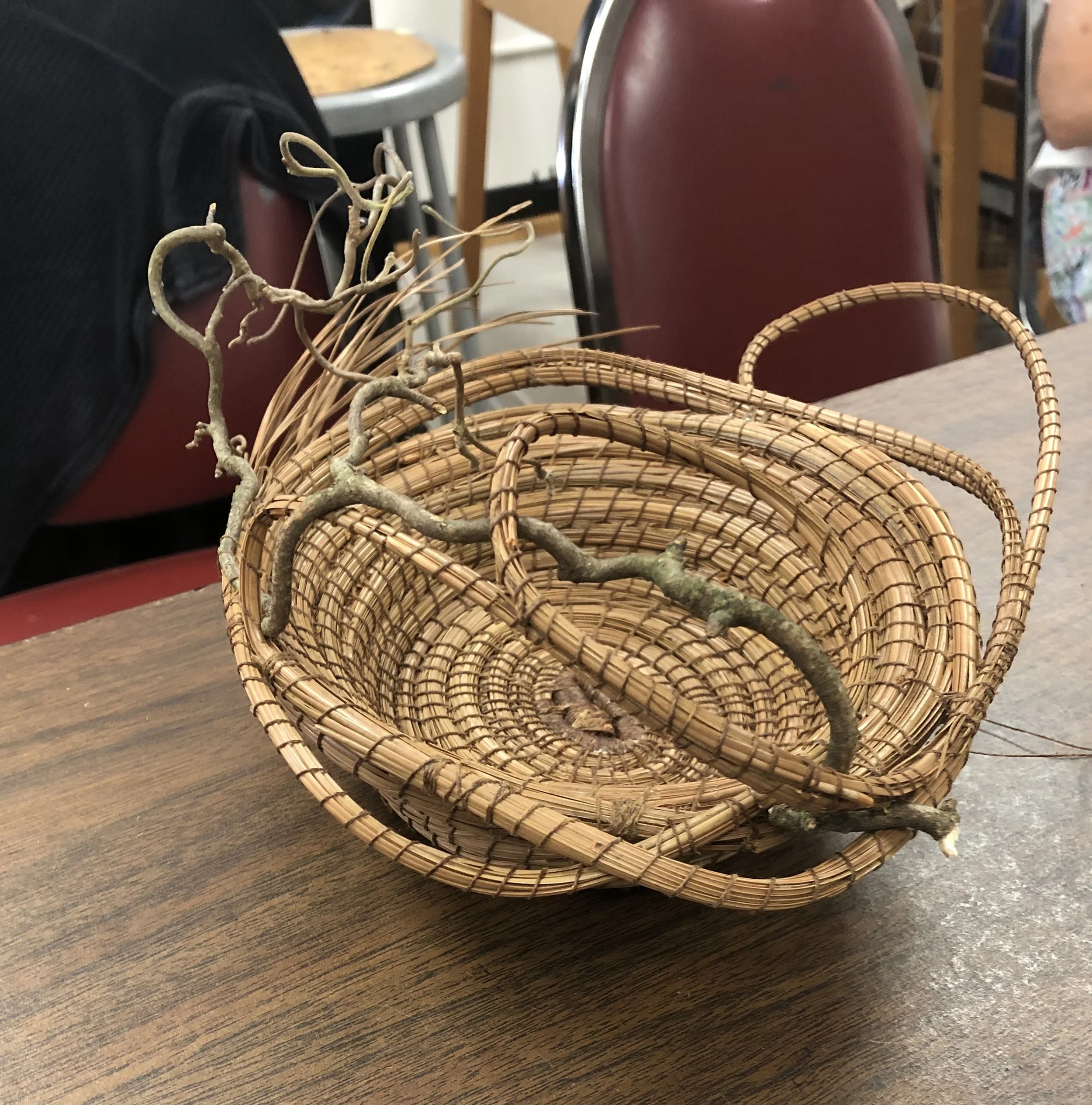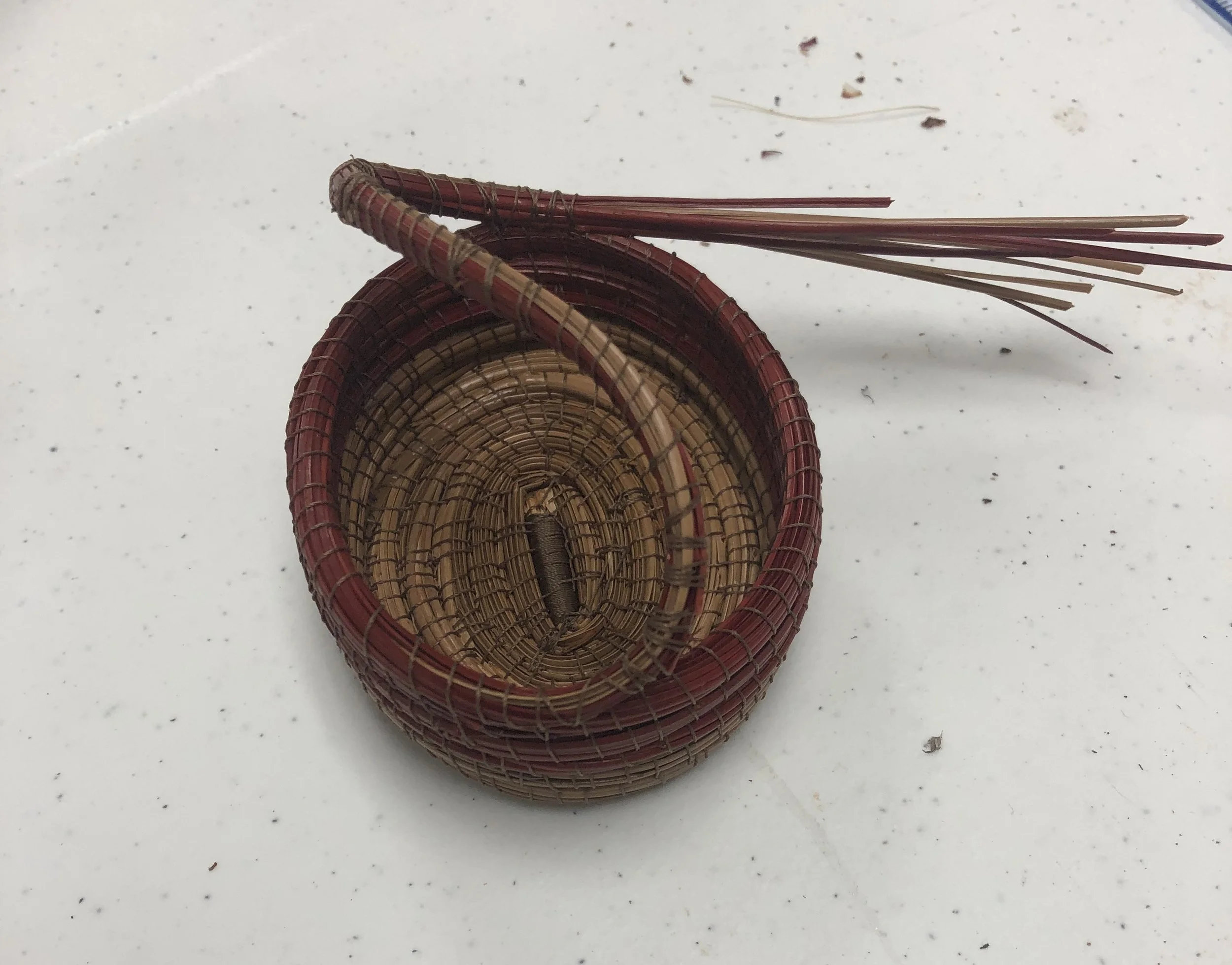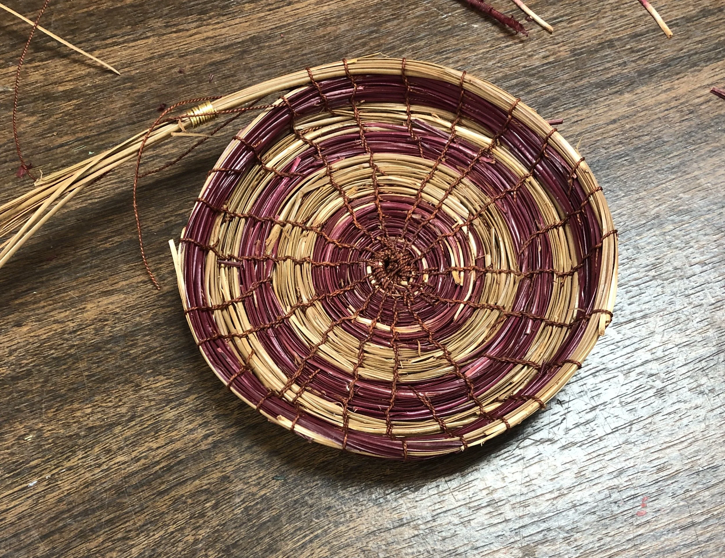 This is a two day workshop consisting of the basics of coil sculptural forming through the creation of a small sculpture weaving. Starting with a loop of pine needles, we will go through the techniques of wrapping your own free form stitches, shaping the walls of a solid form, and the basics of my vining techniques. At the end of the workshop you should have a grasp on how to take these techniques and use them in your own way.